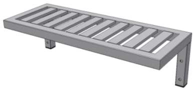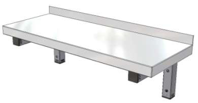 Celonerezové vyhotovenie. Polica hrúbky 40 mm vystužená pozdĺžnou výstuhou. Od dĺžky 1500 mm 3x konzola. Nosnosť police 30 kg.
