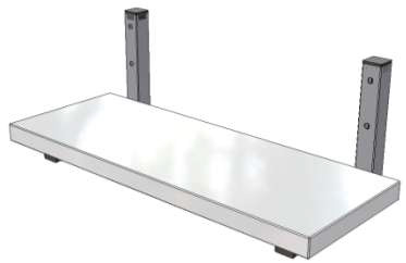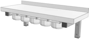 Celonerezové vyhotovenie. Polica hrúbky 40 mm vystužená pozdĺžnou výstuhou. Od dĺžky 1500 mm 3x konzola. Súčasťou police 5 ks koreničiek GN 1/9. Nosnosť police 30 kg.