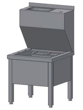 Výlevka je vyrobená z nerez plechu hrúbky 1,2 mm. Prelamovaná pracovná doska s vovareným lisovaným drezom a rámom. V hornej časti umývadielko GN ½-150 a otvor na batériu.